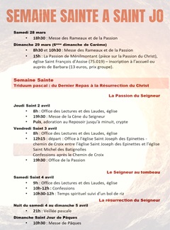 Toutes les informations nécessaires pour vivre la Semaine Sainte à Saint Jo’