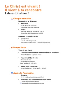 Vie paroissiale et perspectives